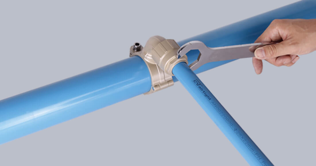 Airtight快装管路 系统经过国家检验中心压力检验认证, 根据不同管径设计不同的锁紧结构,确保管路连接安全可靠,接头采用主动密封,确保零泄露